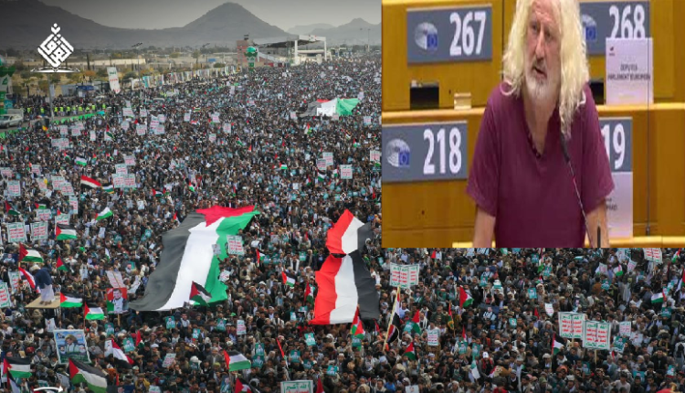 وقال عضو البرلمان الأوروبي، الايرلندي، مايك والاس في رسالته “يلهم اليمنيون اليوم العالم”، لافتاً إلى إرث الإمبريالية البريطانية الذي يفهمه الأيرلنديون جيدا – وهو الذي لا يزال يحدد الظروف التي يعيشها الفلسطينيون واليمنيون والكثير من الناس في جميع أنحاء العالم والتي لا تطاق، مشيرا إلى الدعم الغربي غير المشروط لإسرائيل، والذي يتضح أكثر من خلال الهجمات الوحشية الجبانة وغير القانونية على اليمن من قبل الولايات المتحدة وبريطانيا.