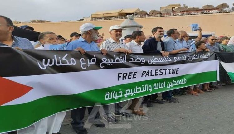 متظاهرون في المغرب يرددوا هتاف “حيوا اليمن السعيد أرض العزة والصمود” ويشيدون بالقوات المسلحة اليمنية
