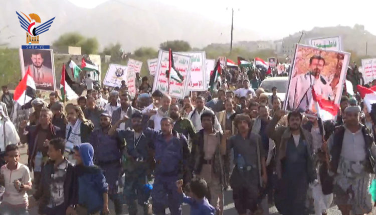 وردد المشاركون الهتافات المنددة بالعدوان الأمريكي الإسرائيلي والجرائم التي يرتكبها بحق الشعب الفلسطيني في غزة وكذا العدوان الأمريكي البريطاني على اليمن، داعين إلى مواصلة الحشد والنفير في مواجهة العدوان وإسناد المقاومة الفلسطينية في حرب التحرير المقدسة .