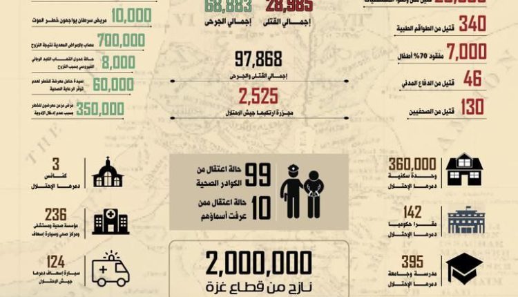 احصائية 135 يوم من عدوان الاحتلال الاسرائيلي الصهيوني على قطاع غزة في فلسطين On فبراير 19, 2024 457 Share أفق نيوز | احصائية 135 يوم من عدوان الاحتلال الاسرائيلي الصهيوني على قطاع غزة في فلسطين 457 Share FacebookTwitterGoogle+ReddItWhatsAppPinterestEmail