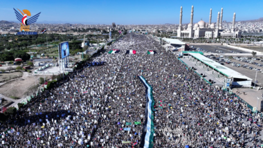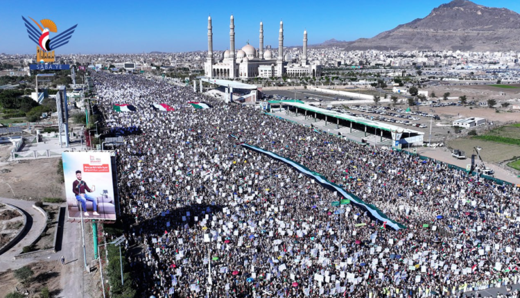حشود مليونية في العاصمة صنعاء في مسيرة “مسارنا مع غزة.. قدماً حتى النصر”