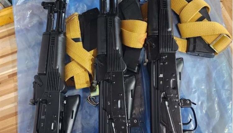 ويظهر في الصورة سلاح الي بشكل اسود مشابه للاسلحة الروسية ويسمى اياكي قصير ١٠٤ .