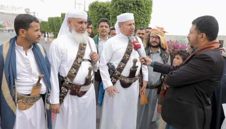 وكان في طليعة الحضور المليوني بميدان السبعين وفد من مشايخ قبائل يام الذي أبوا إلا أن يشاركوا في الموقف التاريخي، معتبرين مشاركتهم في المسيرات، أنها تأتي في سياق المواجهة ضد القتلة والمجرمين من الصهاينة والأمريكيين الذين يبيدون المسلمين وسط صمت عالمي مريب.