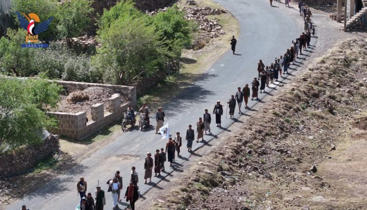 أفق نيوز |  اقيم بمديرية الحيمة الداخلية بمحافظة صنعاء اليوم مسيراً شعبياً لألف و600 خريجاً من الدفعة الثالثة لدورات “طوفان الأقصى” ضمن حملة التعبئة العامة.