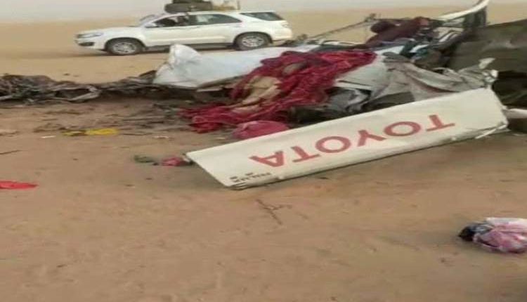 توفي عدد من المسافرين، إثر تصادم سيارتين في صحراء الجوف، خلال عودتهم من السعودية لقضاء شهر رمضان في اليمن.