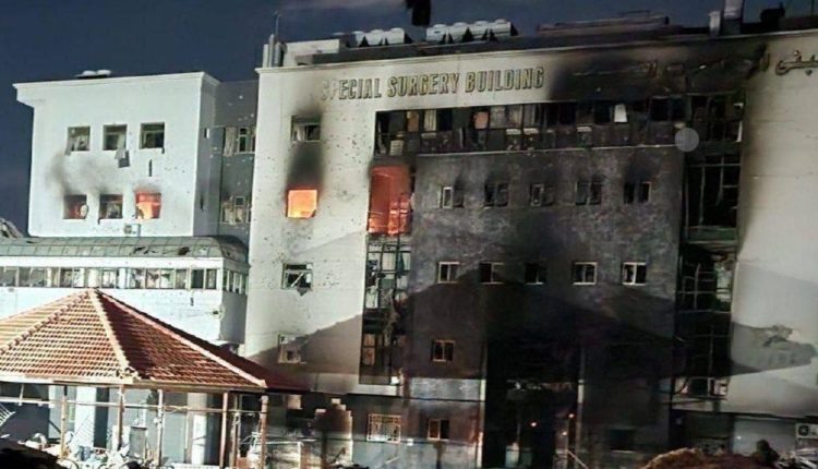 وأدان هذه الجريمة الجديدة والمتواصلة على مرئي وسمع العالم أجمع، دون أن يحرك ساكنا لوقف هذه المجزرة بحق هذا الصرح الطبي والمدنيين المحميين بقوة القانون الإنساني.