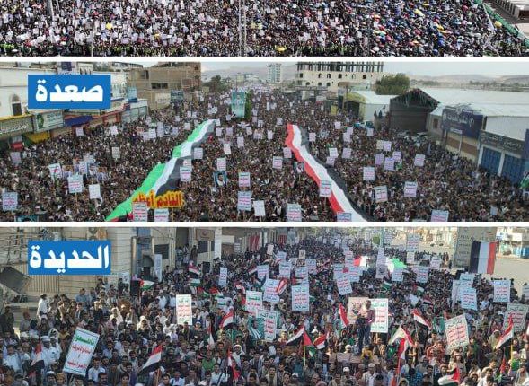 وفي الجانب المقابل، فقد شهدت محافظات الحديدة وتعز وحجّـة المطلة على السواحل الغربية اليمنية وباب المندب، ارتفاعاً كَبيراً في عدد الساحات، وحجم الحشود؛ ما يؤكّـد أن الاستنفار الشعبي قادم بقوة لموازاة الموقف العسكري، وتغطية متطلبات معركة الفتح الموعود والجهاد المقدس.