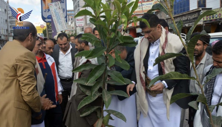 حيث دشن الدكتور أبو لحوم ومعه وزير المياه والبيئة بحكومة تصريف الأعمال المهندس عبدالرقيب الشرماني ومحافظ اب عبدالواحد صلاح، وأمين عام المجلس المحلي أمين الورافي، زراعة الأشجار في خط العدين مشورة.