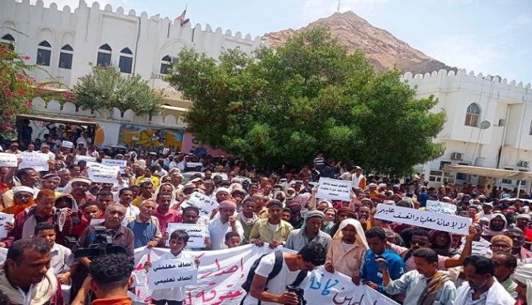 احتجاجات غاضبة للمعلمين بمدينة المكلا تنديدا بتردي الأوضاع المعيشية وانهيار الوضع الاقتصادي وارتفاع الاسعار
