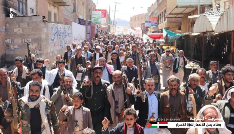 16 مسيرة ووقفة في المحويت دعما للشعب الفلسطيني والمجاهدين في غزة