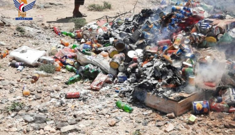 وخلال عملية الإتلاف التي حضرها وكيل المحافظة صالح المنصوري، أوضح مدير مكتب الصناعة بالمحافظة أحمد الطاهري، أن الإتلاف تم بعد استكمال كافة الإجراءات القانونية.