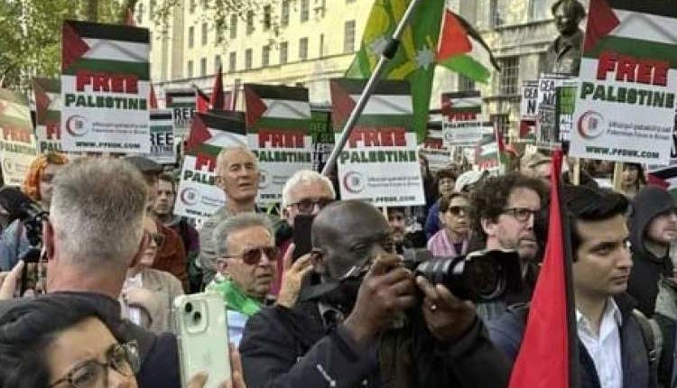 تظاهرة بالآلاف أمام مقر الحكومة البريطانية رفضا للعدوان الصهيوني على رفح