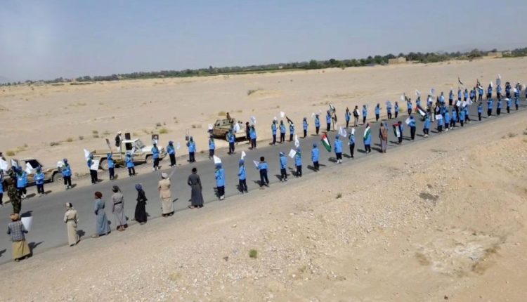 وخلال المسير الذي انطلق من مدرسة الشهيد القائد مرورا بسوق الإثنين، ومنطقة فرشا وصولا إلى عزلة بن شهاب، ومن ثم إلى روضة الشهداء في عزلة المبنى، ردد المشاركون هتافات معبرة عن التضامن مع الشعب الفلسطيني.