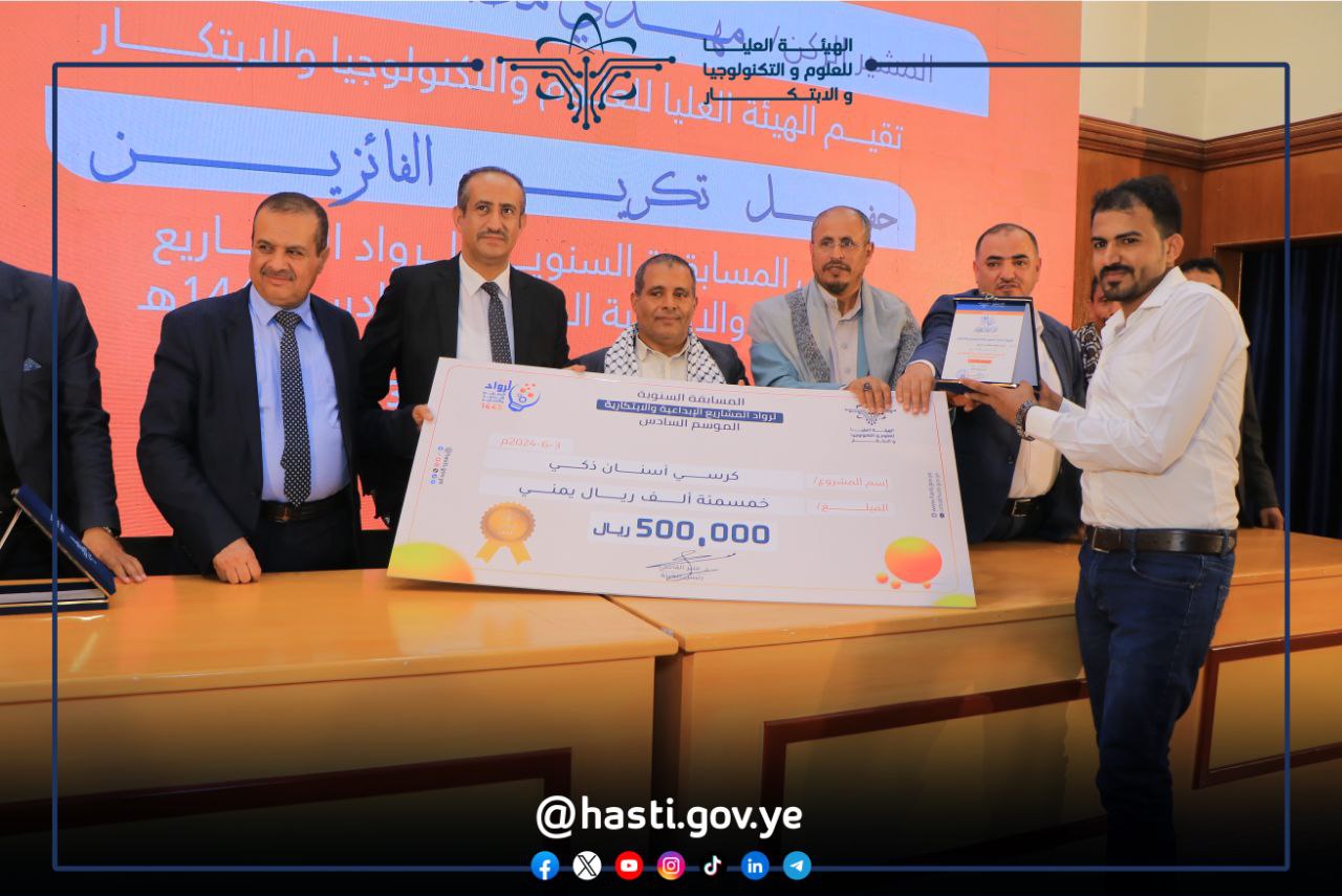 وفي الحفل، أكد أمين سر المجلس السياسي الأعلى، الدكتور ياسر الحوري، اهتمام المجلس والحكومة بأنشطة وبرامج الهيئة العليا للعلوم والتكنولوجيا والابتكار.