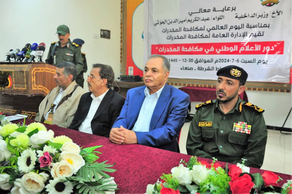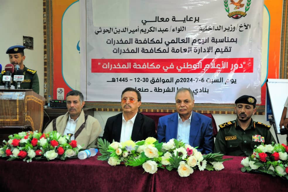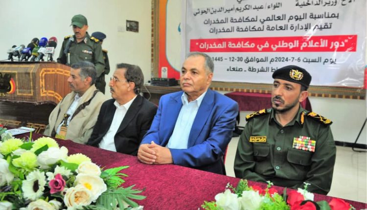 أفق نيوز | بمناسبة اليوم العالمي لمكافحة المخدرات وبرعاية كريمة من وزير الداخلية اللواء عبدالكريم امير الدين الحوثي استعراضت الادارة العامة لمكافحة المخدرات بقطاع الشرطة الأمن والشرطة بوزارة الداخلية إنجازات الإدارة في مكافحة المخدرات ومروجيها بالإضافة الى ورشة توعوية للاعلاميين والنشطاء .
