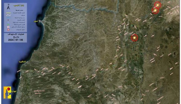 وفي بيانات منفصلة، السبت، أوضحت المقاومة أنها شنت هجوما جويا بسرب من المسيرات الانقضاضية على مربض المدفعية التابع للكتيبة 403 التابع للفرقة 91 في بيت هلل الذي اعتدى، الجمعة، على قرانا وأهلنا، وأصابت أهدافها بدقة ممّا أدى إلى اشتعال النيران فيها، كردٍ على اعتداءات العدو الإسرائيلي على القرى الجنوبية الصامدة والمنازل الآمنة والاعتداء على المدنيين.