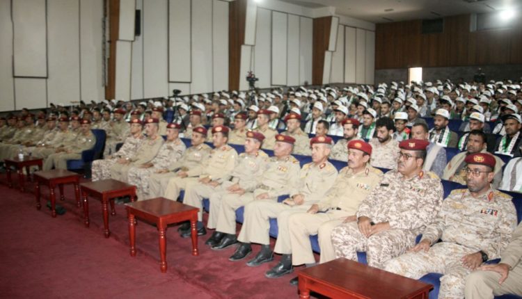 وفي حفل اختتام بحضور رئيس هيئة القوى البشرية اللواء عبدالله البزاغي، نقل مساعد وزير الدفاع للموارد البشرية اللواء الركن علي محمد الكحلاني تحيات وزير الدفاع ورئيس هيئة الأركان العامة إلى الخريجين وتمنياتهما لهم بالتوفيق والنجاح.