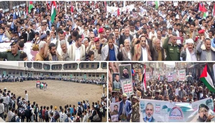 وردد المشاركون في المسيرات، شعارات منددة بجرائم الابادة الصهيونية الإرهابية بحق الفلسطينيين في قطاع غزة
