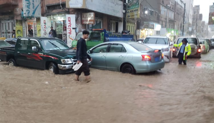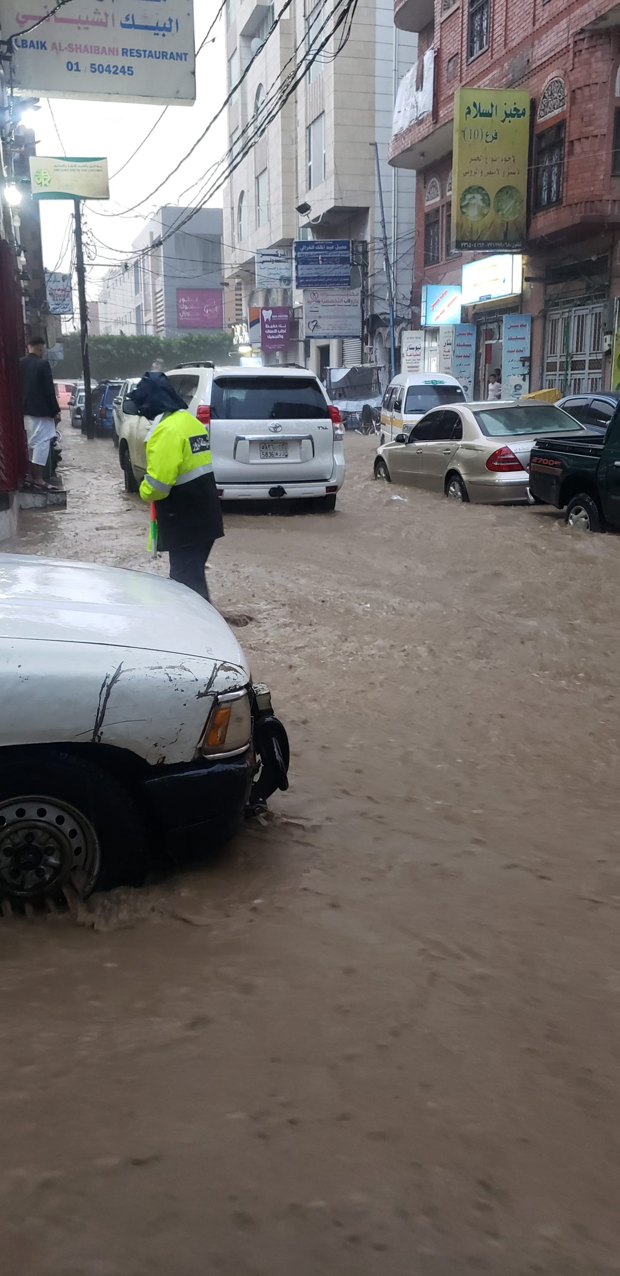 وتدفقت السيول في سائلة صنعاء واطلقت الجهات المعنية تحذيرات لتجنب المرور فيها ، فيما دوت صافرات الإنذار على إمتداد السائلة .