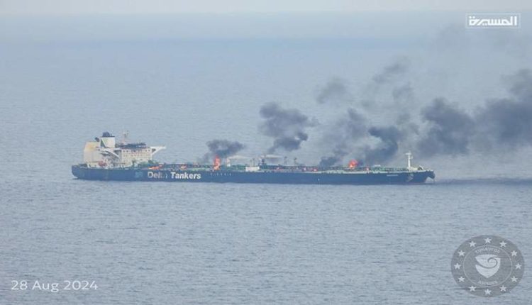 سفينة “سونيون” تواصل اشتعالها بالرغم من مرور أيام على استهدافها