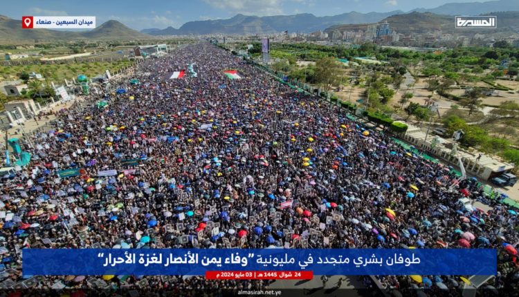 بعزيمة كبرى وثبات اسطوري يواصل الشعب اليمني مساندة غزة من خلال الخروج المليوني في مختلف الساحات أسبوعيا متحديا الظروف الاقتصادية والمناخية وغيرها من متقلبات الحياة.