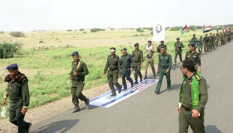 ورفع الخريجون من منتسبي إدارة الأمن والقضاء بالمديريتين في المسير الذي انطلق على الخط الرئيسي الممتد من الزيدية إلى المنيرة، العلمين الفلسطيني واليمني، مرددين هتافات النفير، وتفويض القيادة الثورية باتخاذ أي قرارات للجهاد في سبيل الله ونصرة الشعب الفلسطيني.