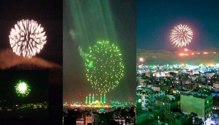 وتزامن اطلاق الألعاب النارية في كافة المدن والقرى والمناطق اليمنية , وسط استعدادات كبيرة وغير مسبوقة في المناطق الحرة لاحياء ذكرى المولد النبوي الشريف.