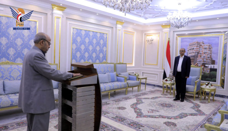 أفق نيوز | أدى اليمين القانونية أمام فخامة المشير الركن مهدي المشاط رئيس المجلس السياسي الأعلى اليوم، الدكتور عبدالمؤمن عبدالقادر علي شجاع الدين بمناسبة تعيينه رئيساً لمجلس القضاء الأعلى.