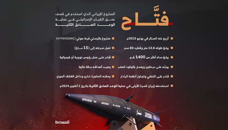مواصفات الصاروخ الإيراني (فتّاح) والذي ضرب عمق الكيان الصهيوني في عملية الوعدالصادق2