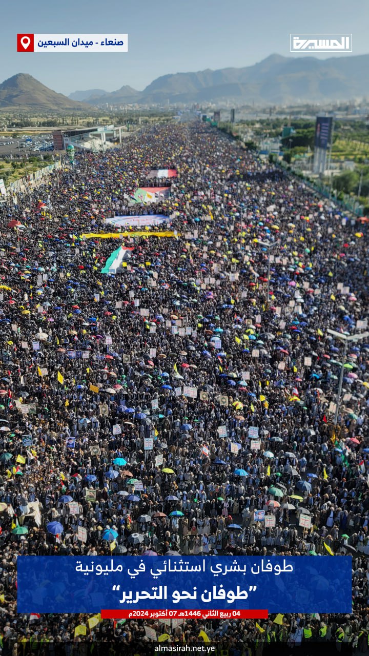 وأشارت إلى أن الخروج المليوني للشعب اليمني يأتي استجابة لدعوة الأخوة في حركة المقاومة الإسلامية حماس، والتأكيد على الوقوف الكامل والمستمر إلى جانب حركات المقاومة ومساندتهم بكل الوسائل حتى تحقيق النصر.