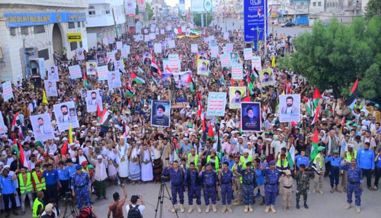 73 ساحة تشهد مسيرات مليونية بالحديدة إحياء للذكرى الأولى لمعركة طوفان الأقصى
