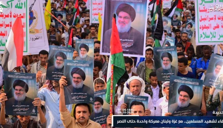 ويشير الطل إلى ضرورة أن يبادل الشعب اليمني الوفاء بالوفاء للأمين العام لحزب الله وهو ما فعله اليمنيون وقائدهم المفدى السيد عبد الملك بدر الدين الحوثي “يحفظه الله” حينما أطل السيد القائد في كلمته لتطمين محور المقاومة، باعثا روح الأمل لكافة جمهور المقاومة، إضافة إلى التوافد المليوني الغير مسبوق في كافة الساحات اليمنية ، رافعين صور الأمين العام لحزب الله مرددين الهتافات والعبارات المساندة للبنان.