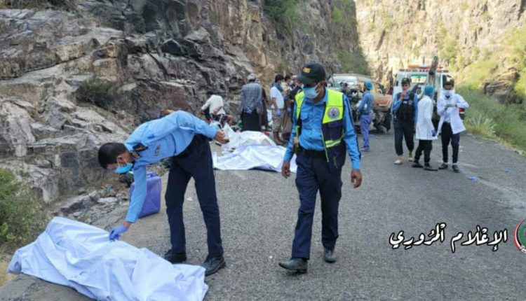 نوفي 12 شخصاً بينهم خمسة نساء وثلاثة أطفال اليوم في حادث مروري مروع في منطقة باب العين بعد منطقة القدم في اتجاه محافظة الحديدة .