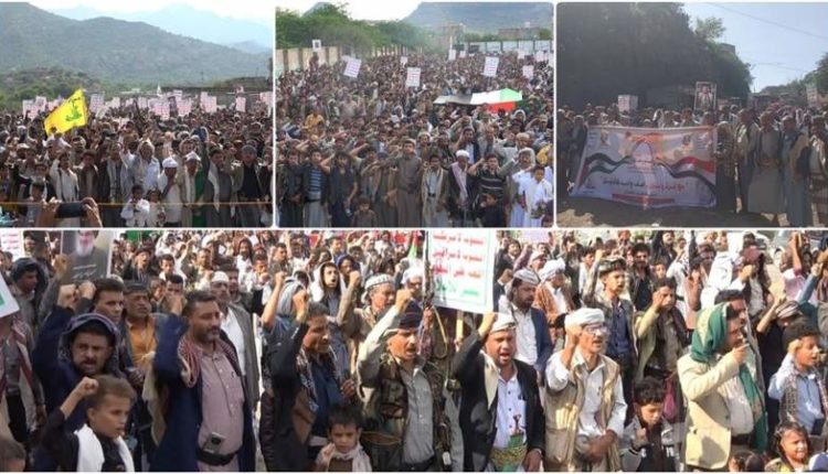أبناء محافظة تعز يحتشدون في 14 ساحة بمسيرات (مع غزة ولبنان.. صف واحد كالبنيان)