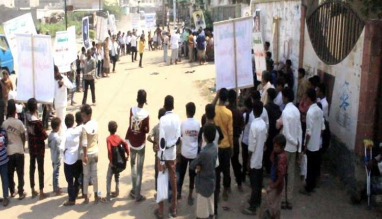 مسيرة ووقفة طلابية في المنصورية بالحديدة تضامنا مع لبنان وفلسطين