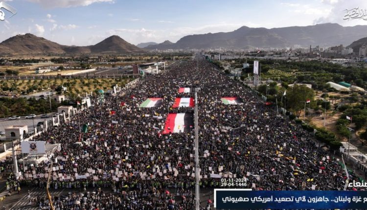 صنعاء.. مسيرة مليونية تؤكد الجاهزية لأي تصعيد أمريكي صهيوني