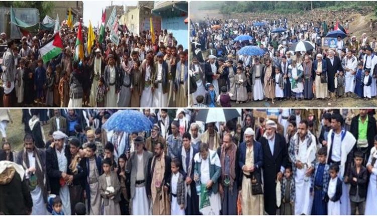 أبناء محافظة حجة يحتشدون في مسيرات جماهيرية تضامناً مع الشعبين الفلسطيني واللبناني
