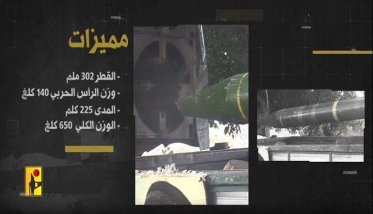 وفي مقطع فيديو بثه الإعلام الحربي للحزب، عن مواصفات الصاروخ، حيث يبلغ قطر الصاروخ الدقيق 302 مليمترا مع رأس حربي زنة 140 كيلوغرام، بينما يصل الوزن الكلي للصاروخ 650 كيلوغرام.
