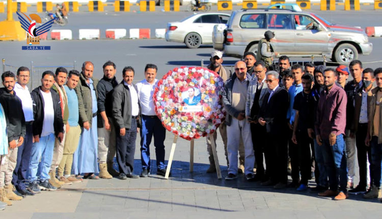 ووضع نائب رئيس الجامعة الدكتور محمد فايع وقيادات الجامعة والكادر الأكاديمي والإداري إكليلاً من الزهور على ضريح الشهيد الصماد ورفاقه وقرأوا الفاتحة على أرواحهم.
