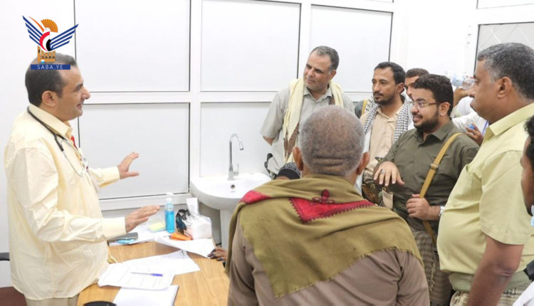 فيما استعرض الدكتور الكحلاني ومدير مستشفى عبس، الدكتور عادل الدانعي، آلية سير العمل واستقبال المواطنين لمعالجتهم في المخيم.