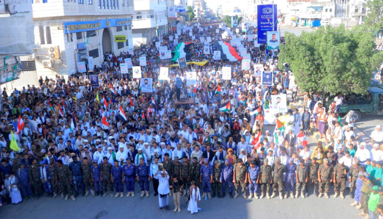 110 مسيرات جماهيرية بالحديدة تحت شعار “ثابتون مع غزة بلا كلل ولا ملل ولا تردد”