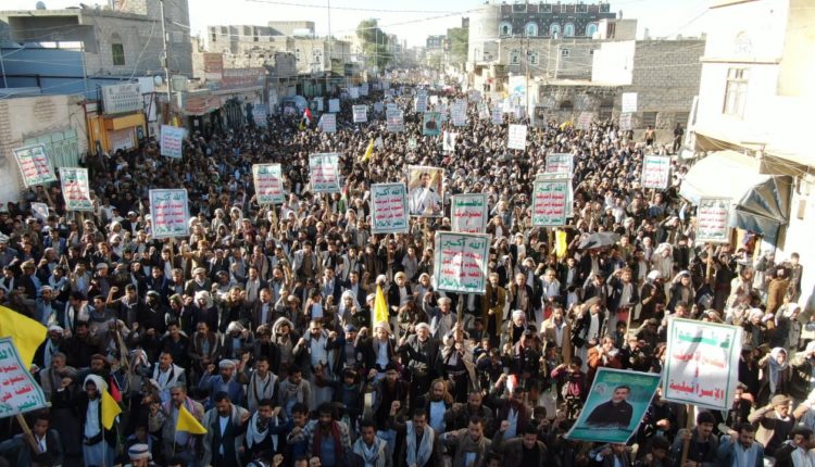 حشود جماهيرية كبرى في 21 ساحة بذمار تحت شعار “ثابتون مع غزة .. بلا كلل ولا ملل ولا تردد”