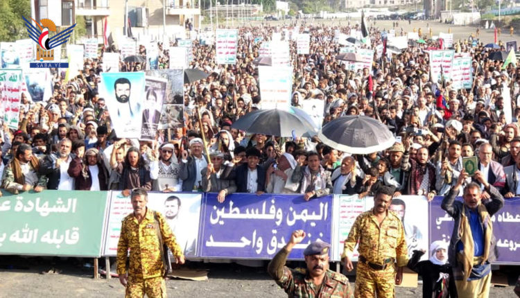 كما أشار إلى أنه ” وانطلاقاً من إيماننا بالله سبحانه وتعالى، وجهاداً في سبيله وابتغاءً لمرضاته، نستمر في خروجنا الأسبوعي بمسيرات مليونية، نصرةً للشعب الفلسطيني ومجاهديه الأعزاء، وتضامناً مع الشعبين السوري واللبناني ومجاهدي حزب الله، ومواجهةً للمشروع الصهيو أمريكي”.