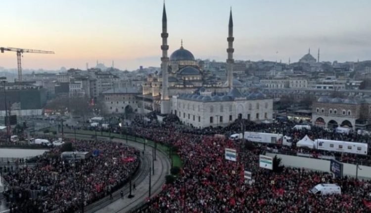 احتشد مئات الآلاف في مدينة إسطنبول التركية، الأربعاء، للتظاهر دعمًا للشعب الفلسطيني في قطاع غزّة، وللمطالبة بوقف العدوان الصهيوني المتواصل منذ أكثر من عام وقطع العلاقات مع الكيان الغاصب.