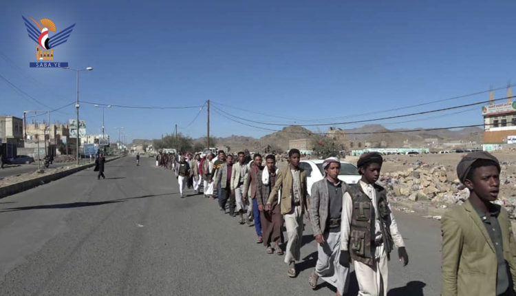 أفق نيوز | نظمت التعبئة العامة بمديرية جحانة ، محافظة صنعاء اليوم مسيرا راجلا لـ 500 خريج من خريجي دورات طوفان الأقصى ، من أبناء عزلتي المدينة ووادي مرحب في اطار الإعداد والجهوزية لمعركة “الفتح الموعود والجهاد المقدس”.