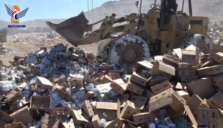 وخلال عملية الإتلاف أوضح مدير المكتب أحمد الطاهري أنه تم ضبط المواد الغذائية والألبان المنتهية الصلاحية خلال حملة الرقابة والتفتيش التي نفذتها كوادر المكتب خلال الشهرين الماضين في مدينة البيضاء ومديريات رداع.