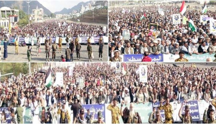 إلى ذلك شهدت مديريات المربع الشمالي “يريم، السدة، النادرة، والرضمة” 17 مسيرة حاشدة، تقدّمتها قيادات المديريات الأربع، أكد المشاركون خلالها الاستمرار في إسناد الشعب الفلسطيني حتى إيقاف العدوان الصهيوني على غزة.