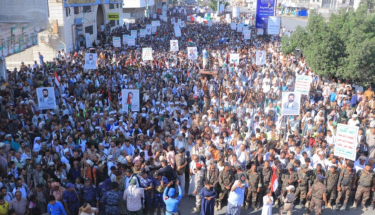وأكد بيان مسيرات الحديدة، التمسك المستمر بالقضية الفلسطينية، مخاطبا الشعب الفلسطيني بقوله ” أنتم لستم وحدكم ولن تكونوا وحدكم، فالله معكم ونحن معكم ولن نترككم”.
