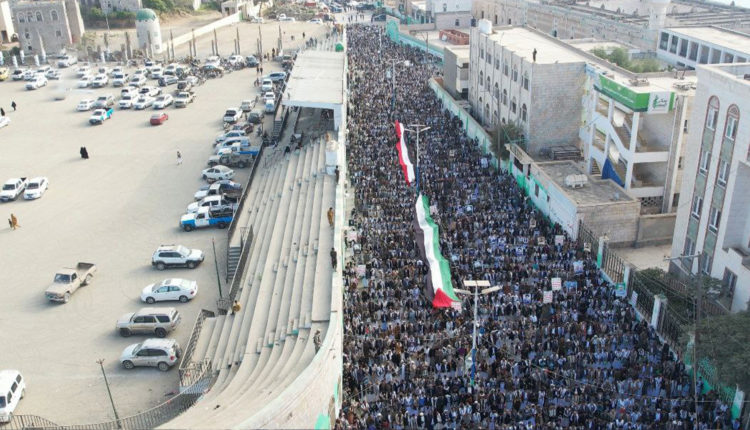 ورفع المشاركون في المسيرات الذين تقاطروا إلى الساحات، العلمين الفلسطيني واليمني ورددوا الشعارات المؤكدة على استمرار الصمود والثبات في نصرة قضايا الأمة وفي مقدمتها القضية الفلسطينية.