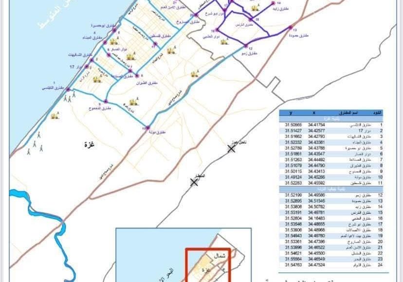 وأضافت أنها “تشمل الشوارع والمفترقات التي سيتم فتحها في المرحلة الأولى في مدينة غزة: مفترق النابلسي، دوار الـ 17، مفترق الشاليهات، مفترق الميناء، مفترق أبو حصيرة، دوار أنصار، مفترق الصناعة، مفترق الطيران، مفترق الدحدوح، مفترق دولة، مفترق فلسطين”.